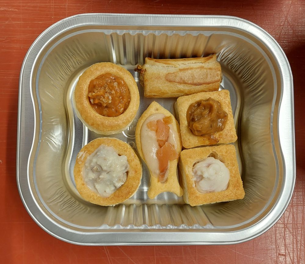 Inhoud: Mini-worstenbroodje/Vol-au-vent/Bolognaise/Zalm/Ossenstaart/Ham-kaas